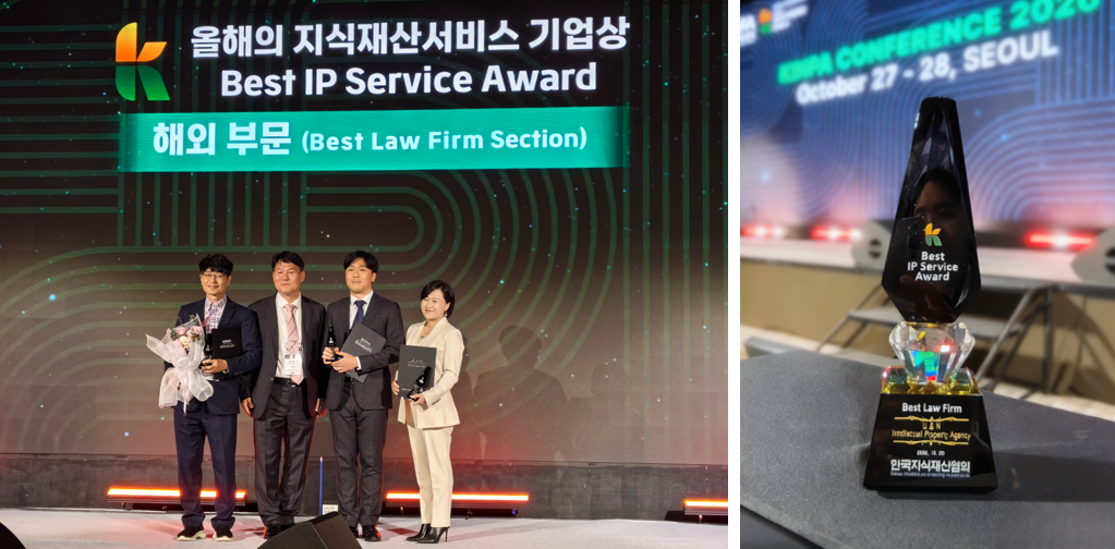 会議期間中、鉦霖知識産権は知的財産分野における豊富な実績と卓越したグローバルサービスを提供した功績が認められ、韓国知的財産協会(KINPA)より「Best IP Service Award(最優秀法律サービス機関賞)」を授与された。